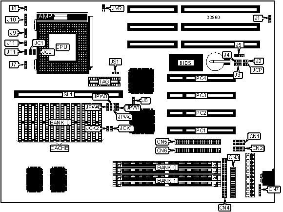 32-bit PCI slots (4), floppy drive interface, green PC connector, IDE interfaces (2), parallel port, PS/2 mouse interface, serial ports (2), cache slot, remote power on connector |