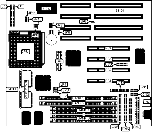 32-bit PCI slots (4), floppy drive interface, green PC connector, IDE interfaces (2), parallel port, PS/2 mouse port, serial ports (2), IR connector, USB connector