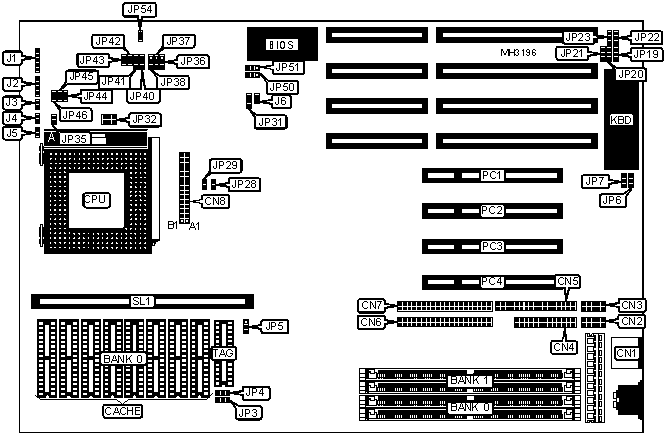 32-bit PCI slots (4), floppy drive interface, green PC connector, IDE interfaces (2), parallel port, PS/2 mouse port, serial ports (2), VRM connector, cache slot