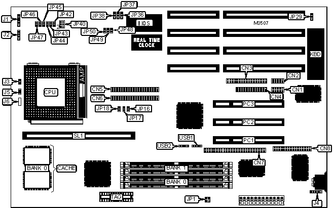 Note: Board accepts EDO memory. Banks 0 & 1 are interchangeable. | ||