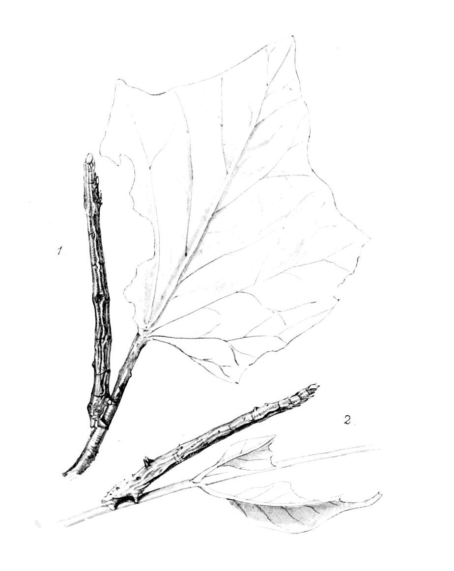 This moth is shown on Plate 4, Fig. 6. It is somewhat similar in general appearance to the last mentioned, but the {10}colour of the fore wings is greyer; the cross lines are not parallel, and the outer margins of these wings are less irregular. The caterpillar is greenish, with black dots, and white lines along the back and sides; the head and plate on the first ring of the body black. It feeds, on poplar and aspen, in April and May. By day these caterpillars may be found spun up between two leaves or in a folded leaf. The moth is out in July and August, but is rarely noticed in the daytime, although at night, when it becomes active, it may be obtained, sometimes not altogether uncommonly, at honeydew, or in much fewer numbers at sugar or light. The best way to obtain the species is to search for the caterpillars, which are not at all difficult to rear. Most of them, however, prefer the higher foliage of well-grown aspen or poplar, where they may be seen but not readily secured; but I have generally found as many as I wanted within reach.