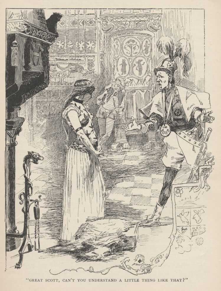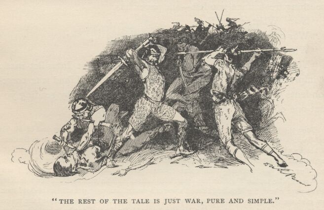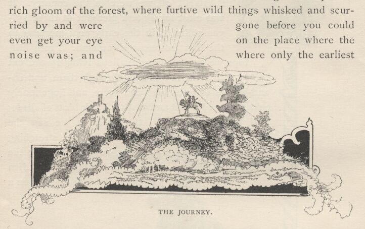 All that evening I sat by my fire at the Warwick Arms, steeped in a dream of the olden time, while the rain beat upon the windows, and the wind roared about the eaves and corners.  From time to time I dipped into old Sir Thomas Malory's enchanting book, and fed at its rich feast of prodigies and adventures, breathed in the fragrance of its obsolete names, and dreamed again.  Midnight being come at length, I read another tale, for a nightcap—this which here follows, to wit: