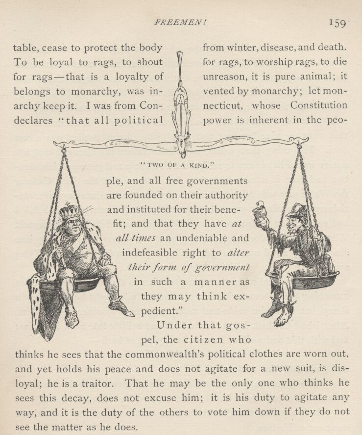 The question as to whether there is such a thing as divine right of kings is not settled in this book.  It was found too difficult. That the executive head of a nation should be a person of lofty character and extraordinary ability, was manifest and indisputable; that none but the Deity could select that head unerringly, was also manifest and indisputable; that the Deity ought to make that selection, then, was likewise manifest and indisputable; consequently, that He does make it, as claimed, was an unavoidable deduction. I mean, until the author of this book encountered the Pompadour, and Lady Castlemaine, and some other executive heads of that kind; these were found so difficult to work into the scheme, that it was judged better to take the other tack in this book (which must be issued this fall), and then go into training and settle the question in another book.  It is, of course, a thing which ought to be settled, and I am not going to have anything particular to do next winter anyway.
