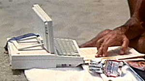 In the movie "2010", Dr. Heywood Floyd (Roy Scheider) is shown using an Apple IIc at the beach. Although the IIc does not come with a battery-pack, it's easy to hook one up and get it running.