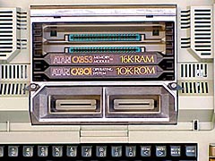 Designed to look like a friendly typewriter, the Atari 800 is an expandable system with two easily accessable cartridge ports under a front cover, and a removable top with four expansion slots inside.