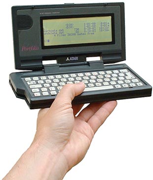 • 1989: - Atari Computer introduces the Portfolio, a 1-pound DOS-based PC, which runs on three AA batteries. Price: US$400