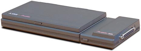 Seen above is the Portfolio with the Parallel Port Interface ($49.95) attached. A Serial Interface ($79.95) is also available. The Portfolio can transfer files to/from other PCs using the Parallel Interface and built-in software.