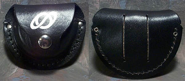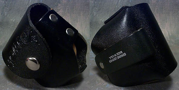 DIY (Do It Yourself) - genuine leather, of course. this is actually the snuff can caddy from Tandy Leather. ;-) i made this in my novice leathercraft years. I've been tempted to make another leather holster, but am waiting until I find the right design, or come up with my own.
