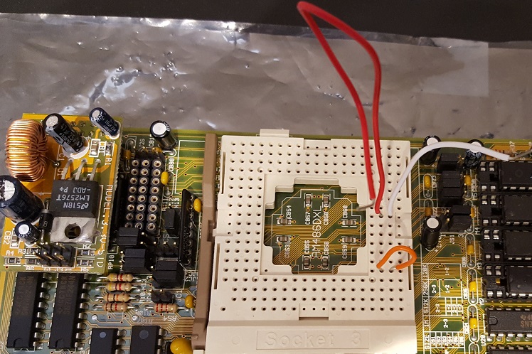 Top row - CPU socket wired ready for testing, and Vcc w/ no regulator so 5V.