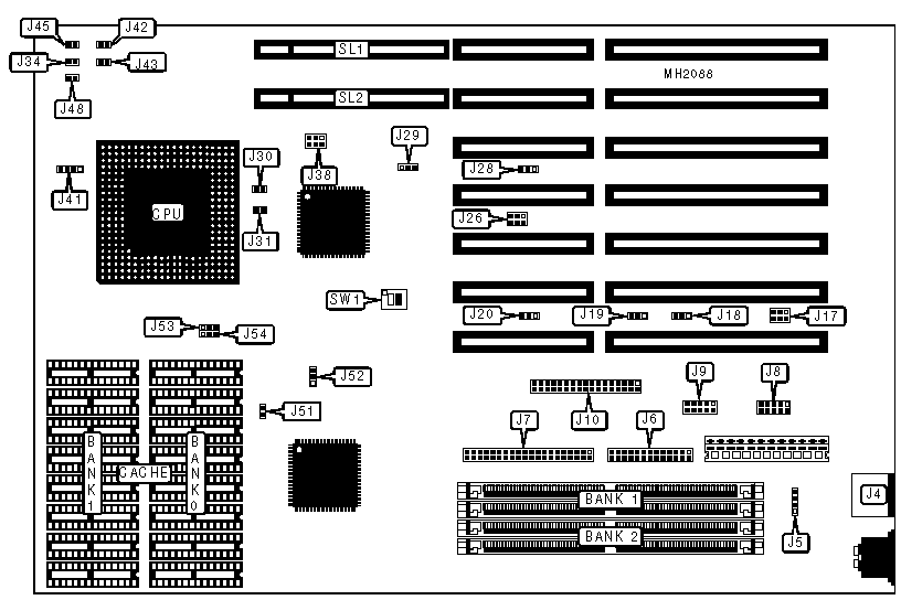 32-bit VESA local bus slots (2), PS/2 mouse port, floppy drive interface, IDE interface, parallel port, serial ports (2)
