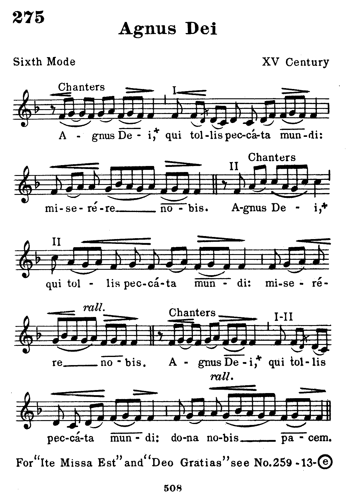 | Agnus Dei (Mass. B. V. M.) | 269 | 489 |