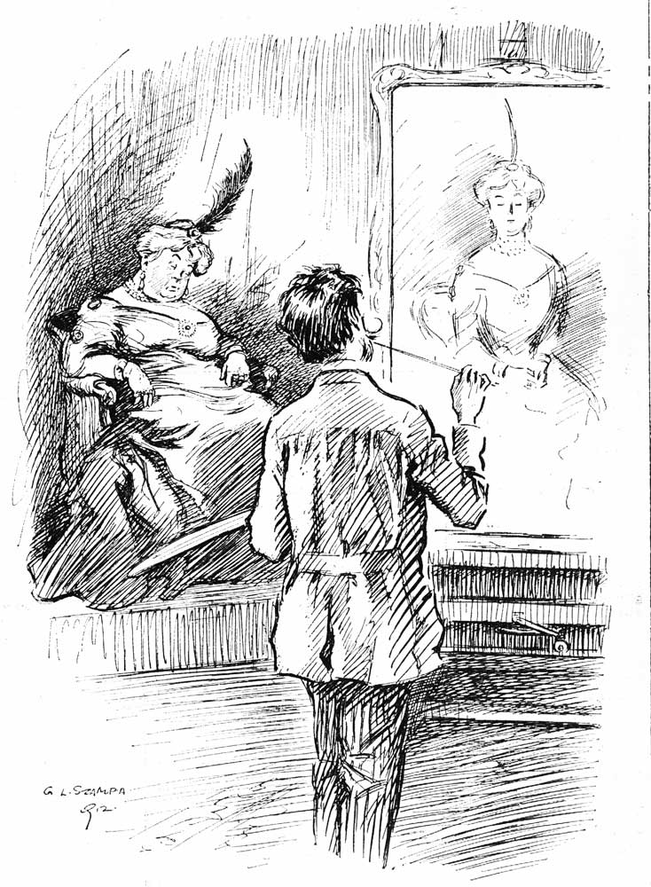 Down I went again, plunged head-first through the Ladies' Dress department, and came to an anchor amongst the pipes, cigars, cigarettes and tobacco. Here I bought two pipes, a cigar-cutter, and five match-stands of a very novel design. Having thus paid my footing, I addressed the salesman.
