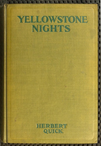 The Project Gutenberg EBook of Yellowstone Nights, by Herbert Quick This eBook is for the use of anyone anywhere at no cost and with almost no restrictions whatsoever. You may copy it, give it away or re-use it under the terms of the Project Gutenberg License included with this eBook or online at www.gutenberg.org Title: Yellowstone Nights Author: Herbert Quick Release Date: August 26, 2012 [EBook #40587] Language: English Character set encoding: ISO-8859-1 *** START OF THIS PROJECT GUTENBERG EBOOK YELLOWSTONE NIGHTS *** Produced by Greg Bergquist, Mary Meehan and the Online Distributed Proofreading Team at http://www.pgdp.net (This file was produced from images generously made available by The Internet Archive/American Libraries.)