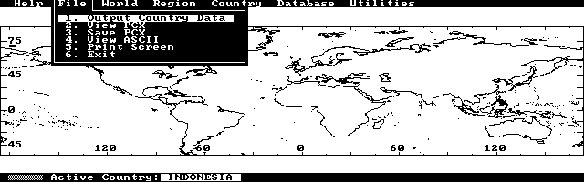 PC Globe display on the Palmtop, showing Indonesia as the selected country. The name "Indonesia" is displayed in the lower left corner and the country is highlighted on the world map (down by Australia).