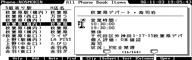 Social activities within the Palmtop user community are among the most important goals of the FHPPC forum. Almost every week "off-line" meetings are held somewhere. Exchange of information is very active. If you plan to visit Japan, please do not forget to notify us by e-mail. You will be welcome wherever you plan to visit in Japan. (Hal should know very welcome you are.)