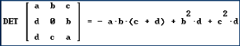 Anyone who has taken a linear algebra course knows that finding determinants of matrices larger than 3x3 is a pain. Most graphing calculators will allow you to input a numeric matrix and find the determinant automatically. Derive handles this quite well, of course. But in addition, Derive allows you to do operations on symbolic matrices as well.