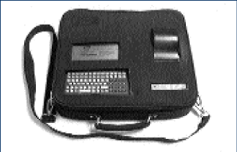 We designed a custom carrying case to house the Palmtop in its opened state while connected to a battery operated printer (see picture). This ever-ready position plus the instant sleep-and-resume mode of the Palmtop parallels a typical handheld computer although it is comparatively more bulky. We managed to package them all into a portable unit at less than half the price of a handheld computer with comparable specifications.