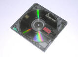 small CD enclosed in caddy with sliding door. Recordable Minidiscs are