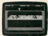 This version of Tightrope requires a joystick plugged into port 2, After you finish walking across the rope, you must repeat the performance while riding a unicycle. At successive skill levels, the acrobat alternates between walking and riding the unicycle.