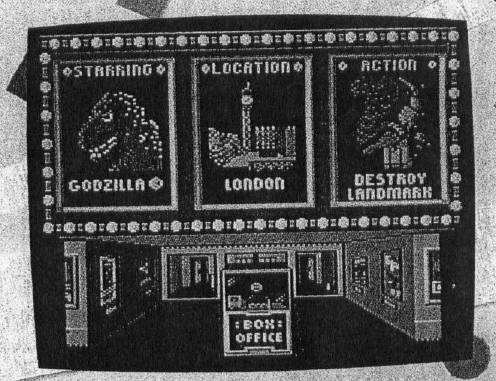 Become Godzilla or one of your favorite movie monsters and lay waste to a city, defeating the army, navy, and air force at the same time. As you tromp around various urban landscapes, you have all of the typical monster attributes—toxic breath, loud screams, and, of course, big feet. The Movie Monster Game features colorful graphics and plenty of action. The game will be available first in Commodore 64, Apple II, and IBM computer versions.