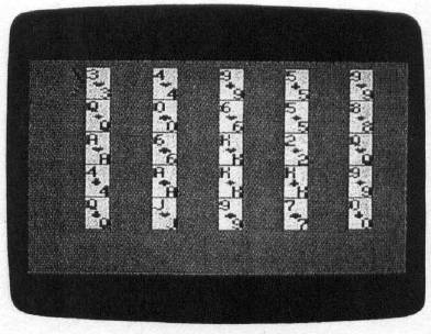 Program 6, for Atari eight-bit computers, uses the cursor keys (either alone or in combination with the CTRL key) to move the cursor. Press RETURN to select a card. Press Q at any time to start a new game.