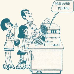 Now you are prompted to enter a password. You may enter up to 80 characters including spaces, combination characters (such as Control-D, Alternate-K), punctuation, just about anything you can type except function keys. A password sequence that includes only alphabetic characters is the most common and the least secure. Longer password sequences are also more secure than short ones. If you have the "Don't echo password" option on, an asterisk will be shown for each character typed. Backspace to correct errors, and press Return when you're finished.