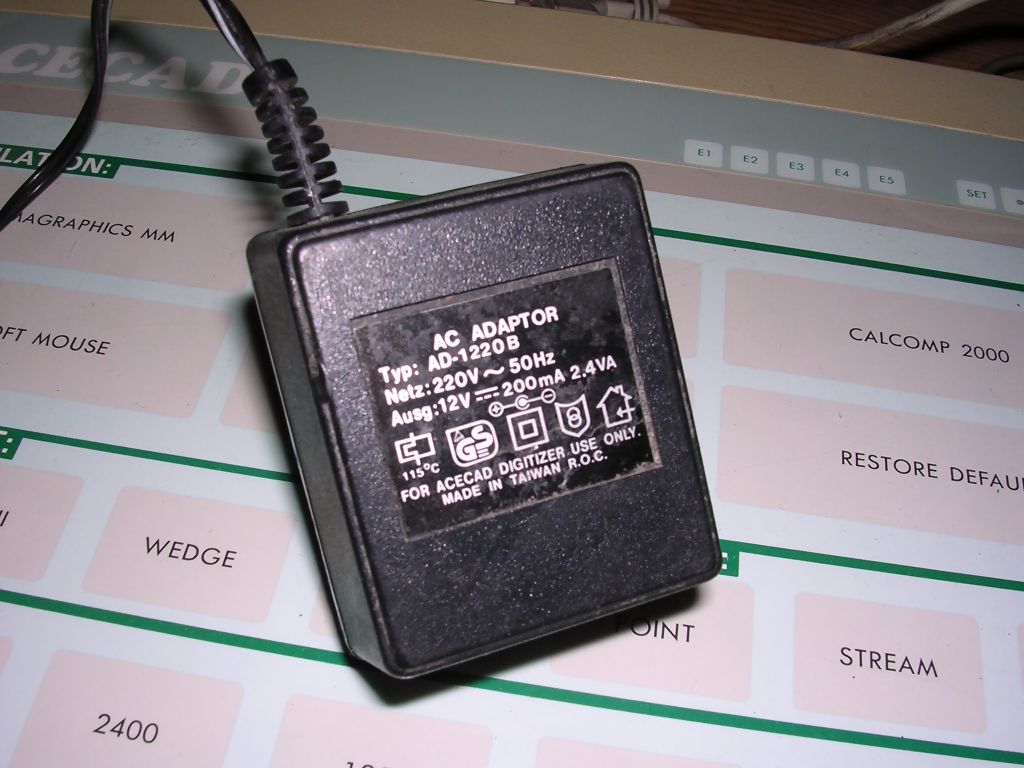 | Information: Tablet used with IBM PC to make interactions in CAD easier, allows to select objects and move them precisely. Two pointing devices can be connected. One is a 4-button mouse calibrated with RF, not ball, second one is probably a stylus. It can emulate a standard mouse or typical graphics tablets of early 1990s. Power supply: |