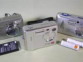(これら以外に、FinePix4500も可動なのですが、電池がへばると不調になるので、ベンチ席のまま。左写真<クリック>で、ベンチ席のジャンク・デジカメ達。右端が、F401)