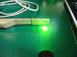 今までは、その光パワーを測ったことがなかったので、今回測ってみたら、何と!押し続けていると10mW以上になるではないか!(図8<クリック>