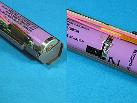 入れ替えた結果、辛うじて1時間保つ状態になりました。_めでたし!左写真、クリックでセルを入れ替えたバッテリの写真_