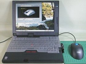 当苑では、サブ機(TP560X)はUSBが使えますが、メイン機(TP560E)の方はPS/2しか使えないので辛い処。(左写真は、TP560XでUSB接続。画面は、「IBM製Mouse Suite」の設定窓)