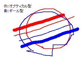 左図は、表面が凹形の(になってしまった)マウス・パッドを使った時のオプティカル型とボール型で描いた手書き図。