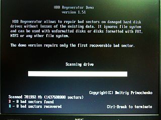 先に、取り敢えず、「HDD Regenerator」を走らせて、改善を試みた。(左写真<クリック>)