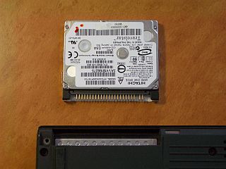 遂に、今回TPX41用のハーフハイト1.8インチHDD-20GB(HTC424020F7AT00)を、ネット・オークションで買いました。(左写真。 総費用\1,988送料、手数料込み)